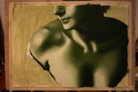 3D rendering of the human figure can be achieved with a monochrome undercoat. Breaking down the multiple challenges is the first step in painting as it can be very confusing to try to deal with so many elements at once; shape, tone, colour and merging the shape’s softness together.